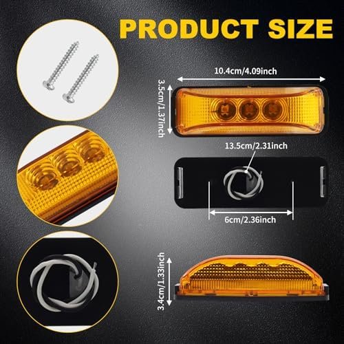 6 Side Marker Lights-The package includes 2 red, 2 white, and 2 yellow universal LED marker lights. Suitable for most 12V DC-24V DC vehicles, such as trucks, trailers, buses, vans, campers, off road vehicles, truck running boardetc.