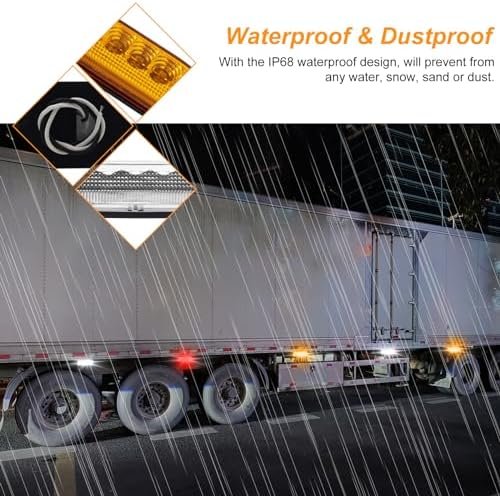 Waterproof and Durable-This LED trailer marker light has a waterproof rating of IP68, preventing damage from moisture, rain, and other adverse weather conditions. Adopting a non filament structure design, it does not generate heat and has a service life of over 5 years under normal use.