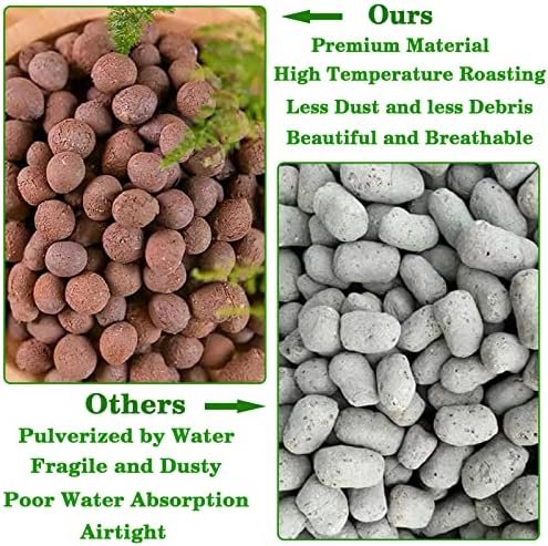 【All Natural Expanded Clay Pebbles】Made of natural clay, baked at high temperature into round pellets, pH neutral helps remove excess acidity, sturdy, no odor, not easy to break, you can safely use it in your garden to help plants grow healthier and faster. Widely used for plant pavement, pot base and hydroponics.