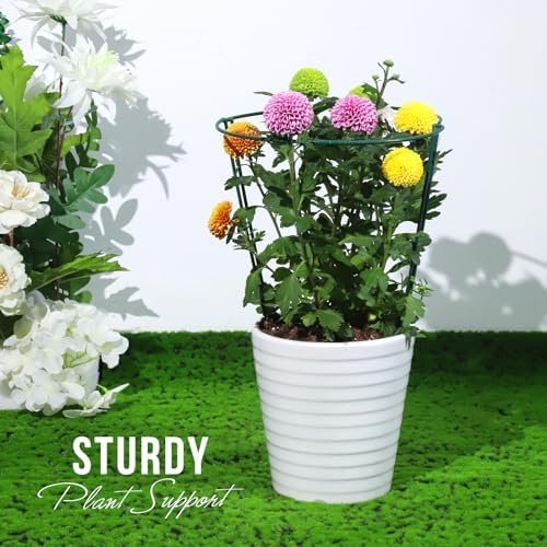 Sturdy Plant Support Stakes: The plant support rings are made of iron, 4mm thick, not easy to deform, stand firmly, well support and protect plants, and a groove on the stake makes it convenient to interlink two or more stakes together for stronger firmness and supporting force.