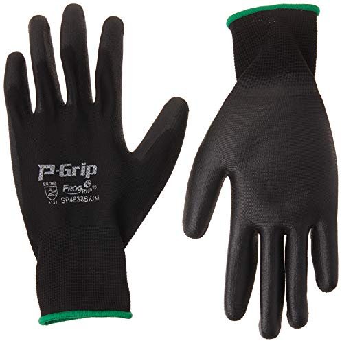 Knit gloves with black PU coating