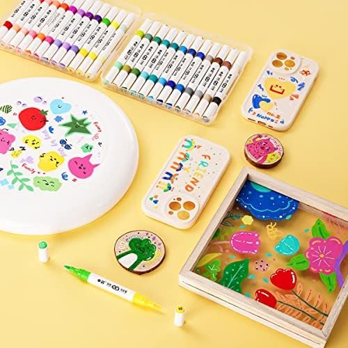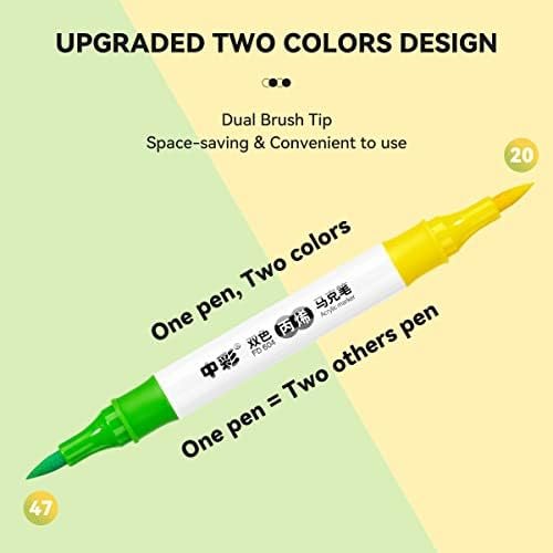 【Upgraded Dual-Color Design】: Unlike other acrylic markers, our paint markers feature an upgraded dual-tip, dual-color design, giving you 24 markers with 48 vibrant colors. The convenient box packaging makes it easy to carry them wherever you go.