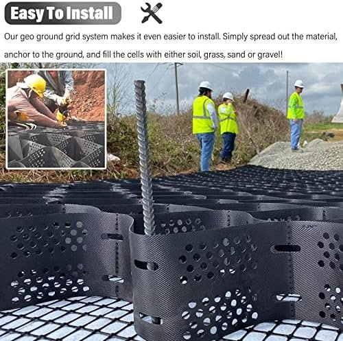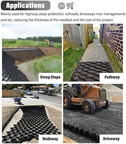 ▶ Easy to Install — This gravel grid system can be cut and attached to each other with ease. Simply spread out the material, anchor to the ground, and fill the cells with either soil/ grass/ sand or gravel.