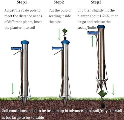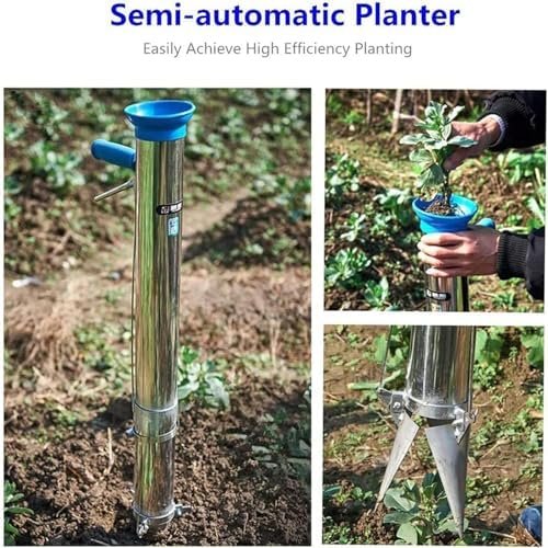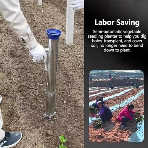 【Semi-automatic Planter】No need to bend over to plant anymore. With this new semi-automatic seeder, it can help you dig holes, transplant and cover the soil. Avoid digging in dry or supersaturated soil.