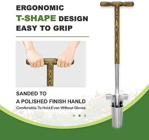 【Easy Grip Wooden Handle】The handle of the garden tool bulb planter (made of FSC approved wood) is ergonomically streamlined to fit the natural shape of the hand when holding and using it, helping to relieve strain on the arms and hands, even For prolonged use without tiring your hands. The wooden handle has been sanded and polished 3,000 times to ensure it is smooth and chip-free, making it very comfortable to hold even without gloves.
