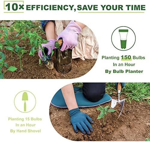 【Bending-Proof Stainless Steel】The bulb planting tool is made of thicker stainless steel, which is highly compressive and corrosion resistant, and more durable, which means it won’t bend when you push it into the ground . It has sharp edges on the bottom to easily cut through thick soil in the garden.