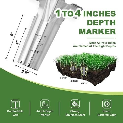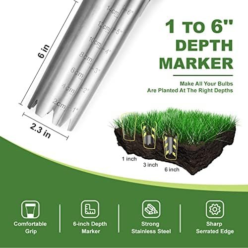 【Easy-to-Read Measurement Markings】The English scale with 1 to 6-inch depth marks on the outside of the tulip bulb planter tool helps to maintain a consistent depth. No other tools or measuring devices were needed which make all your bulbs are planted at the right depths.