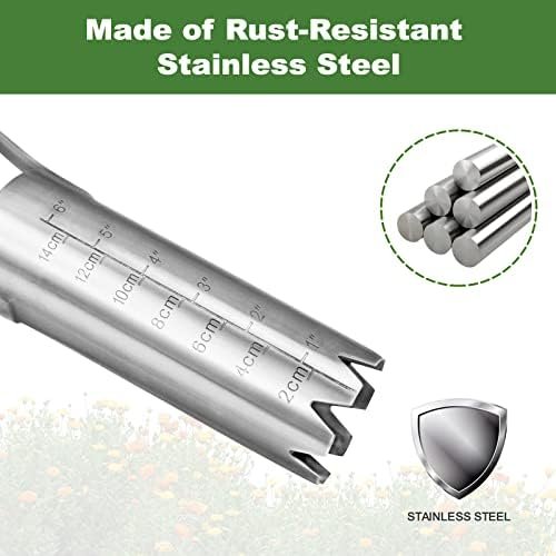 【High-Quality Metal Resists Bending】This bulb planting tool is made of thicker stainless steel, which has strong compression and corrosion resistance and is more sturdy and durable, which means it doesn’t bend when you push it into the ground. It has sharp edges on the bottom, which can easily cut through heavy soil in your garden.