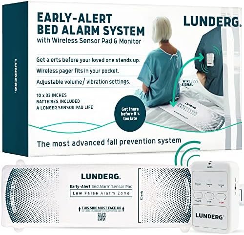 Lunderg Early Alert Bed Alarm for Elderly Adults – Wireless Bed Sensor Pad & Pager – with Pre-Alert Smart Technology – Bed Alarms and Fall Prevention for Elderly and Dementia Patients