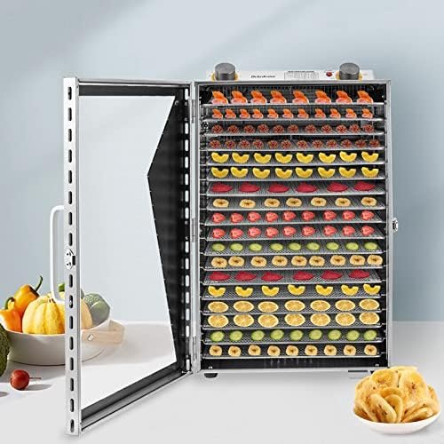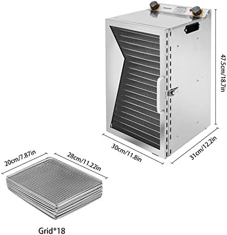 Large Capacity: The food dehydrator machine comes with a total of 18 stainless steel trays measuring 7.87*11.22in, each layer is spaced 1 inch apart and can be adjusted to suit your needs. So you can dehydrate different fruits, vegetables and meats at once to improve dehydration efficiency.