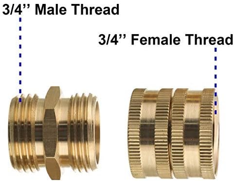 Male to male coupler: 3/4 inch double male thread on both ends. Both connect to garden hose with female end.