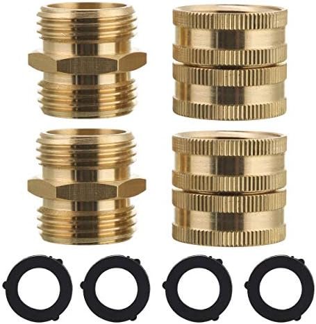 M MINGLE Garden Hose Adapter, Male to Male, Female to Female, 3/4 Inch Brass Connector, 4-Pack with Extra 4 Washers