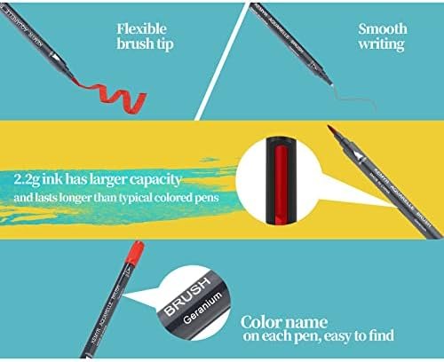 Dual Markers Brush Pen, Colored Pen Fine Point Art Marker & Brush Highlighter Pen for Adult Coloring Hand Lettering Writing Planner Art Supplier