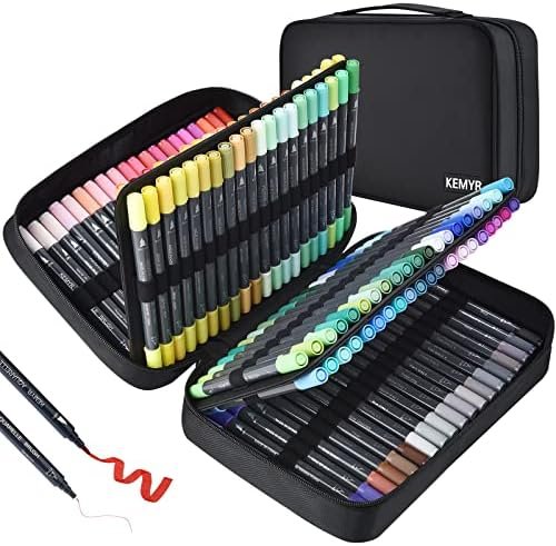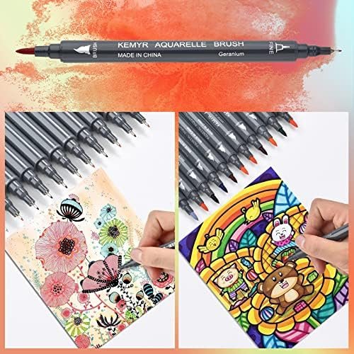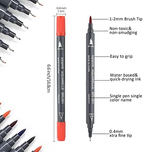 BRUSH & FINE, DOUBLE TIPS, DOUBLE CREATIVITY: KEMYR markers for adult coloring books are a must-have for your masterpiece. The 0.4mm fine tip can glide through the details for intricate coloring, writing, while the 1-4mm soft brush tip flows through the large area art projects for shading, coloring, blending gradient and more, perfect for calligraphy and creating interesting pattern to design your journal.