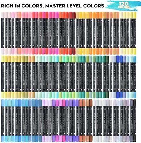 120 VIBRANT COLORS CODED WITH NAME FOR FINDING COLORS FAST: This dual brush markers set includes 120 vibrant colors, and each pen is name for easier finding your preferred colors.