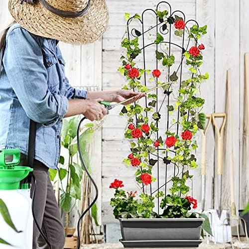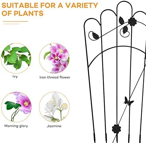 MULTI-PURPOSE PLANT SUPPORT: You can use plant trellis for displaying more plants, such as climbing roses, cucumber vines, ivy, clematis, morning glory, grapes, potted vegetables with long stems, etc. Trellis for climbing plants outdoor can also be used as a barrier to add more beauty to your garden or house