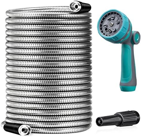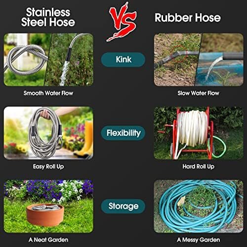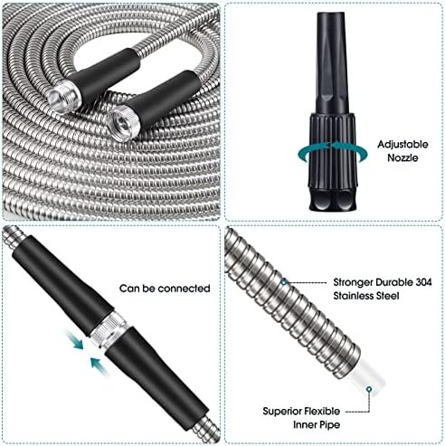 Long Service Life, You don’t Need to Worry about Replacing Hoses Every Year: Our garden metal hose is made of heavy duty industrial grade 304 stainless steel, which is built to withstand much harsher conditions than traditional rubber hose, including pet bites, cacti puncture, dragging through dirt and rocks, and so on. Avoid leakage and burst for LONG TIME use.