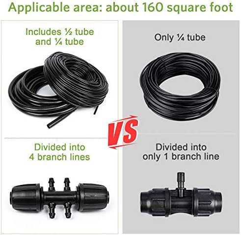 This micro drip irrigation kit is suitable for an area of 160 square feet. You can water all your plants at one time with 200FT + 26FT irrigation tubing. Simple installation without digging or plumbing skills. Instruction included.