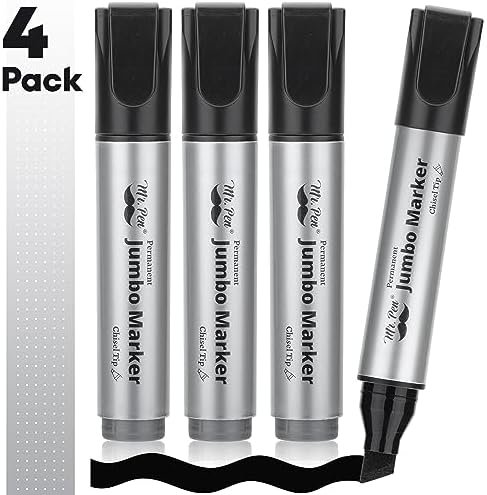 The package includes a set of four jumbo permanent markers, all in a bold, striking black color for clear and precise marking.