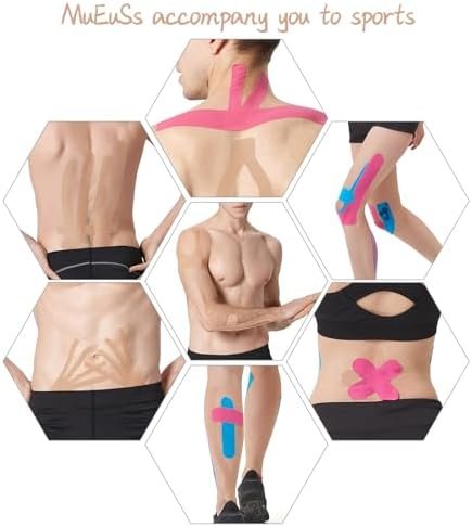 ✮PRE-CUT EASY TO USE – 20 pre-cut 10 inch strips, Ready-to-use precut strips are perfect for tape applications. No need for messy cutting with long, uncut rolls of tape. the precut rounded corners help avoid frays. MUEUSS Kinesiology Tapes BOOSTS your skin away from muscles increasing the blood circulation, providing fast and effective pain suppression and relief, joint protection, fatigue reduction and support for muscles, ligaments and tendons aches and injuries.