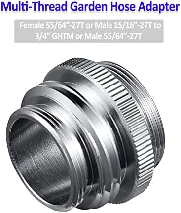 Multi-Thread Faucet Adapter: This faucet adapter converts standard 15/16”-27 male thread (24mm) or 55/64”-27 female thread (22mm) to 3/4” Male hose thread or 55/64″-27 male thread.
