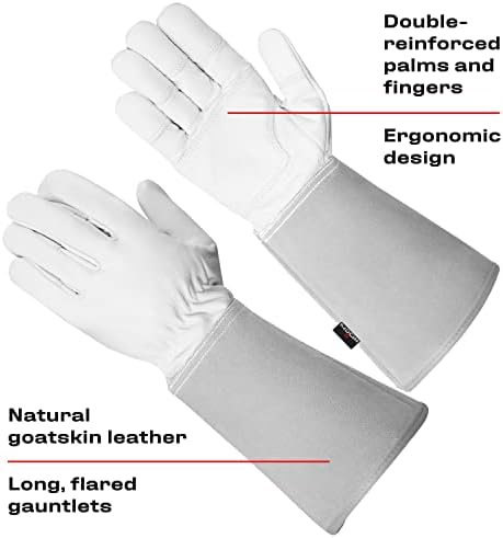 DESIGNED FOR COMFORT & FLEXIBILITY — The goatskin leather in these puncture resistant women’s gardening gloves is soft and supple yet provides heavy duty protection. Thanks to these gardening gloves for women thorn proof, you can handle shears and move your fingers with ease.