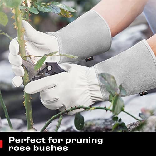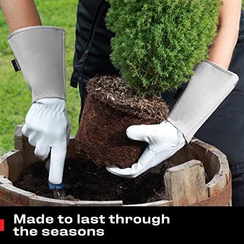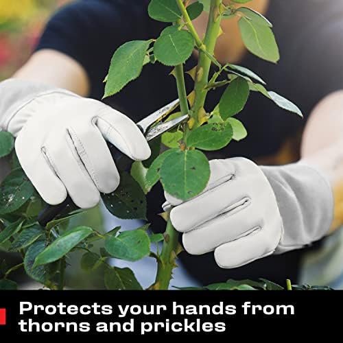 PROTECT HANDS AND ARMS WITH THESE LONG GARDENING GLOVES — The reinforced leather makes these long garden gloves near puncture proof, keeping your fingers and palms safe and giving you 2x more protection than regular womens garden gloves or rose pruning gloves.