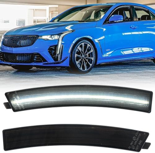✅Compatibility: For 2020 2021 2022 2023 Cadillac CT4 (OEM Part # 84768192, 84768193) front bumper side marker turn signal lights for both of the driver/passenger sides. Upgrade your CT4 sedan’s side strip parking light assembly with smoked lens sidemarker lamps.