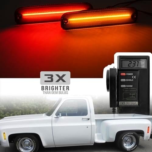 ✅Features: Update your Chevy GMC C/K Series Trucks+ R/V Series Trucks with a stylish and unique smoked lens side markers clearance indicator lamp, outputs 3X brighter 2310Lux light for Side Repeater Lamps. Waterproof IP67, no moisture inside after heavy rain or car washing; reliable connection, anti-scratch.