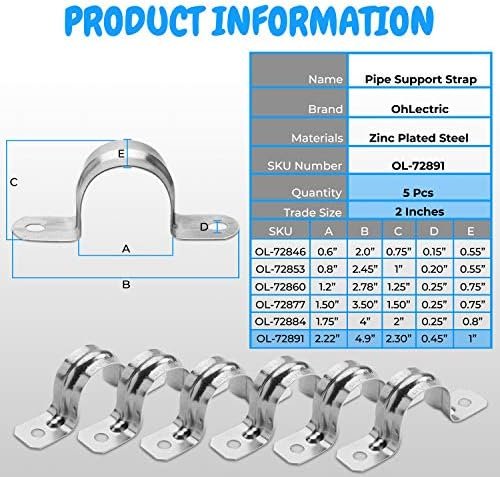 443443443443 OhLectric Pipe Support Strap – Steel Pipe Strap with 2 Holes – Heavy-Duty 2” inch U Bracket – Zinc Coated Tension Tube Clip – Pipe Clamp for EMT Conduits – OL-72891 – 5 PCS – 4zera3a
