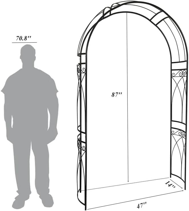 This graceful arch is rich in stereoscopic feeling. It will decorates your garden with its delicate lines and elegant scrollwork. Multiple curved bars provide stereoscopic support and also serve as an ideal place to hang lightweight plants. This arch is perfect for supporting lightweight climbing plants and vines to create a beautiful entry into your garden. Train your plants to grow through the arbor by weaving them in and out of the scrollwork as they grow.