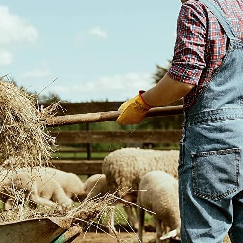 ►100% Genuine leather, Durable and Protective – These work gloves are made of carefully selected high-quality grain cowhide and split cow leather with thickness depth of 1.0mm-1.2mm, which is not only thick but also soft and flexible with moderate oil resistance, puncture resistance.