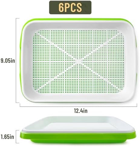 443443443443 Pack 6 of Seed Sprouter Tray with Drain Holes,Seed Germination Tray Kit BPA Free Nursery Tray,Soil-Free Wheatgrass Tray Sprouter Microgreens Growing Kit (Green-6 Pack) – 4zera3a