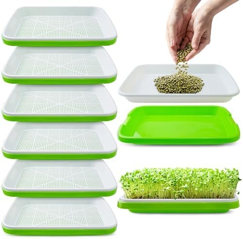 Pack 6 of Seed Sprouter Tray with Drain Holes,Seed Germination Tray Kit BPA Free Nursery Tray,Soil-Free Wheatgrass Tray Sprouter Microgreens Growing Kit (Green-6 Pack)