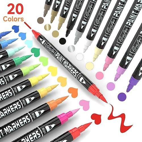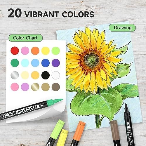 ♞【20 Vibrant Colors】The acrylic paint pens come with 20 vibrant colors, which offer a very wide range of options for your creative projects.