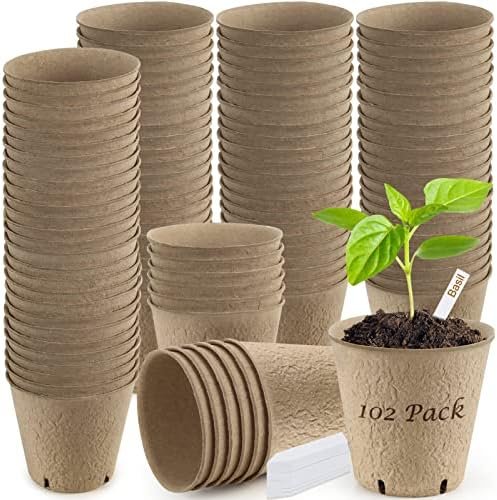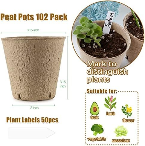 [BIODEGRADABLE PEAT SEEDLING POTS KIT] The set contains 102 packs of 3.15-inch diameter organic peat pots for raising seedlings of various plants, vegetables or fruit. The thicker material helps garden pots support the plant for longer while you encourage it to grow to ground-planting size. Comes with 50 plant labels, you can use to mark seeds in the seedling pots. If you have any problems with our peat pot, you can contact us to provide you with a resolution. Your satisfaction is our aim!