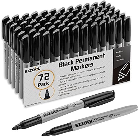 Large Pack: Ezzgol permanent marker set includes 72 pens,all with black ink.