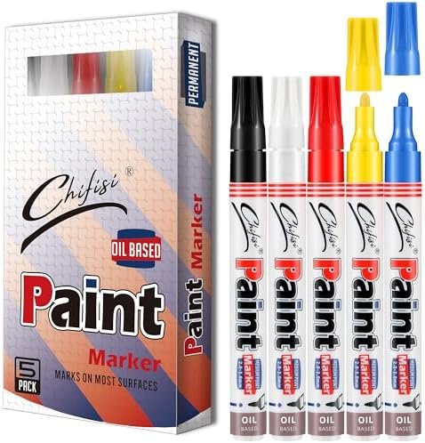 【INDIVIDUAL PACKAGE】Our pens are constructed with a valve.Each oil based paint marker pen is packed in a separate heat shrink film to avoid leakage during shipping or storage. Package contains 5 colors of pens, Including Black, White, Red, Blue and Yellow.