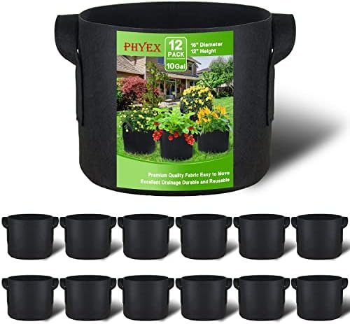 Premium Quality Fabric – PHYEX 12-Pack 10 Gallon Grow Bags are made from high quality non-woven fabric, ensuring durability and longevity for all your planting needs. The breathable fabric promotes faster plant growth by providing better access to oxygen.