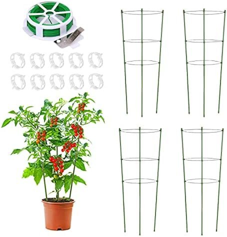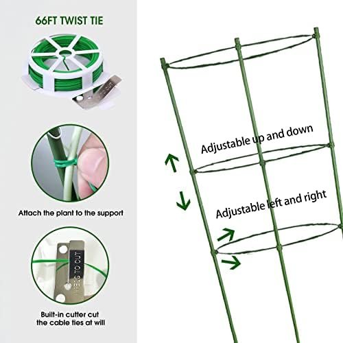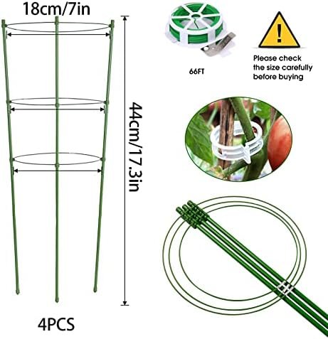【Small Tomato Cages】Value Set of 4 sturdy plant support cages(3 rings diameter: 7.1″),1 pack 66ft garden twist tie and 10 tomato clips.The Support sticks height 18 inches. Great for seedlings & starter plants.