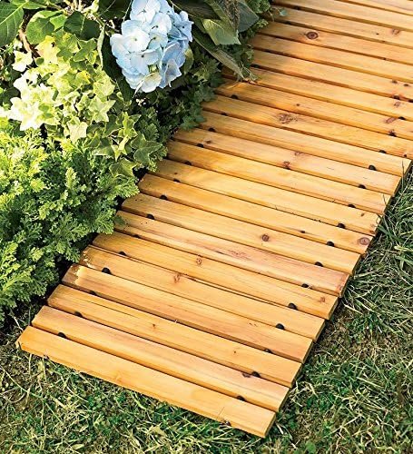 Roll out our 8′ Weather-Resistant Straight Cedar Pathway and stay high and dry while crossing damp or muddy ground. Naturally weather-resistant cedar planks are joined with wire and rubber spacers to create these portable, easy-to-use walkways. With unlimited ways to use this essential cedar pathway, it is the picture of convenience. Easy to clean and store: just rinse with a hose, roll it up and pack it away. Size: 8’L x 18″W.