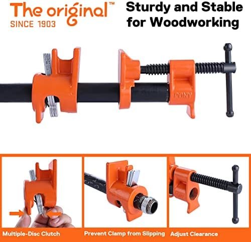【Wide Applications】 PONY sturdy pipe clamps for woodworking are great for almost any length of woodworking project. The big clamping face is suitable for more woodworking projects. The clamping face is 1-1/2″.