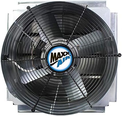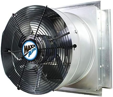 INDUSTRIAL EXHAUST FAN: This MaxxAir 14″ Industrial Exhaust Fan is a powerful fan that can be used in garages, barns, greenhouses, and a variety of other locations. It features 14” fan blades with overall unit dimensions of 13” x 18” x 18”. Rough-in opening is 17.25” x 17.25”.
