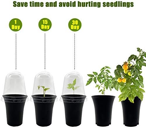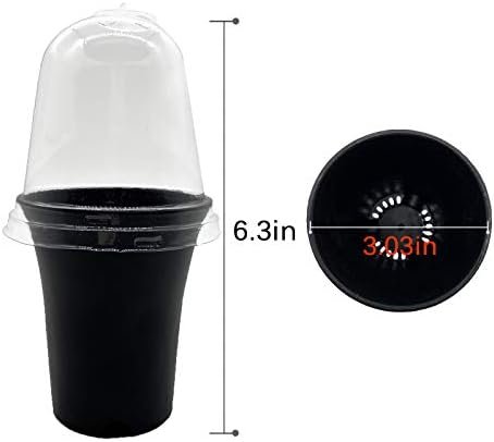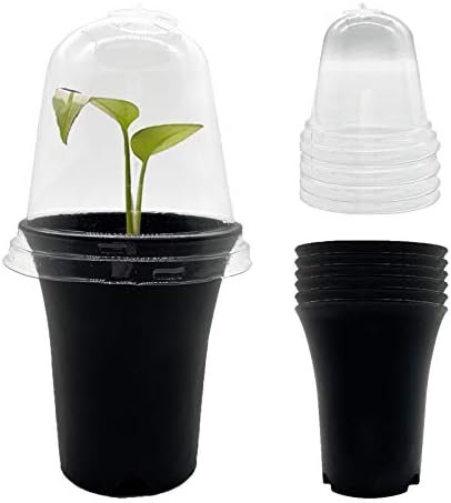 Plant Nursery Pots with Humidity Dome,Resuable planting pots Seedling Trays Seed Starter Kit for Seedling Flower Plant ,Plant Container Cups with Vented Domes and drain holes, 5 kitsFEATURES: Our transparent plastic nursery pots are durable and not easy to break, can be washed and reused, they are very cost-effective. These plant pots are perfect for indoor outdoor plants, vegetables, flowers, professional nursery cultivation, gardening. You can use them in your yard, garden, porch, greenhouse and more. Brightening up your living place. There small plastic pots are drainage holes on the bottom ensuring proper drainage, while allow plants to breathe freely. humidity domes of this plant cups starter help you observe your plants without interrupting the process. And also enhance the humidity and temperature to improve the seed survival rate.Package include 5 x Nursery Pots with Humidity Dome