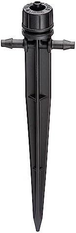 Rain Bird ILD10STKX Drip Irrigation In-Line Dripper/Emitter on Stake with Adjustable Flow and On/Off, 1 Gallon Per Hour, 4-Pack. Pressure compensating dripper/emitter features a turbulent flow path and diaphragm for uniform flow rates over a wide range of operating pressures. Turn cap to adjust flow from a gentle stream, to drip, or complete shut-off. Easy to take apart for inspection and cleaning. Insect baffle minimizes risk of blockages. This 2-in-1 staked pressure compensating dripper delivers an adjustable 1 gallon-per-hour flow rate, and is designed for in-line use with 1/4″ Drip tubing. Ideal for watering root zones of garden and landscape plants, shrubs, and container plantings. In-line design allows multiple drippers to be added along a single section of 1/4″ irrigation tubing and to completely encircle larger plants, shrubs, or trees. Rain Bird’s pressure-compensating design ensures all plants receive the desired watering rate regardless of their position along the tubing run. Barbed ends securely retain 1⁄4″ Drip tubing for a leak-proof connection. Designed with large water passages and self-flushing action to help prevent clogging. Constructed of highly durable UV and chemical-resistant materials to assure long life. Rain Bird “The Intelligent Use of Water”