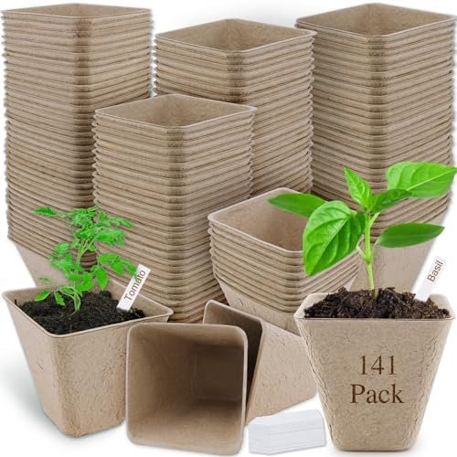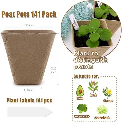 [PEAT POTS SET] This kit includes 141 peat pots, each 3.15 inches in diameter, perfect for nurturing seedlings of various plants. Sturdy construction ensures prolonged support for plants, facilitating their growth until transplant. Additionally, the set comes with 141 plant labels for easy seedling identification. If you have any issues with our biodegradable seed starter pots, please contact us, and we’ll be happy to provide a resolution. Your satisfaction is our ultimate goal!