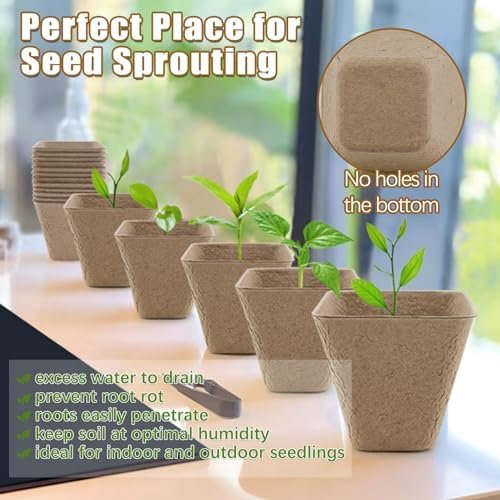 [OPTIMAL ENVIRONMENT FOR SEED SPROUTING] Peat pots have good air permeability and drainage, so there is no drain hole at the bottom. Which can help maintain moisture and protect them from damage during handling. If you need, you can manually create small holes in the bottom of the peat pots. Seed starter pots simplify seed germination conditions, allowing for indoor sprouting in preparation for the upcoming planting season. They are ideal for windowsills, greenhouses, or balconies.