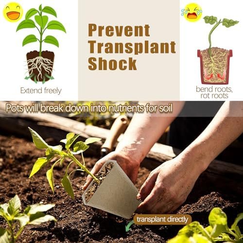 [MINIMIZE TRANSPLANT SHOCK] Peat pots are indispensable gardening supplies, especially when starting seedlings. Using peat pots helps prevent restrictions on plant roots, fostering better root development and growth. After germination, roots easily penetrate the pot walls and extend into the soil. You can transplant the entire pot into the soil to minimize transplant shock and root circling issues. Over time, the seedling pots naturally decompose in the soil, enhancing soil structure.
