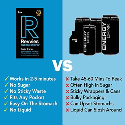 CONVENIENT – Revvies small, light format makes them easy to carry or stash in any pocket, purse, gym bag, desk draw or car glovebox. Each strip is individually wrapped in a waterproof laminate to ensure no matter how harsh the conditions you can rely on Revvies to deliver when you need it.
