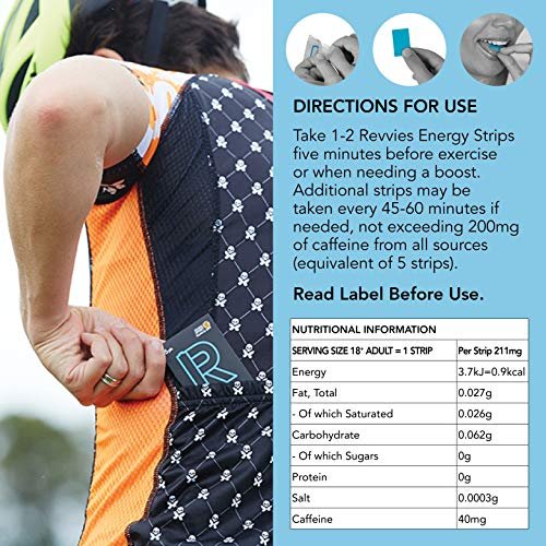LESS THAN 2 CALORIES, GLUTEN-FREE AND VEGAN – Revvies 40mg caffeine strips are less than two calories. So unlike sugary energy drinks or gels, there’s no chance of a sugar crash after the initial boost. They are also Gluten-free and suitable for Vegans.